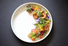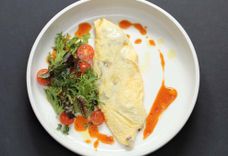 Бриошь с угрем, гуакамоле и яйцом пашот